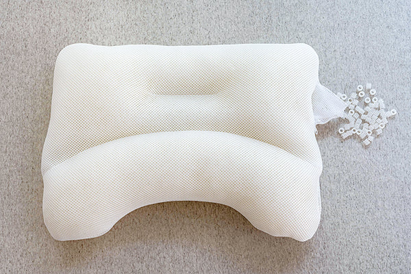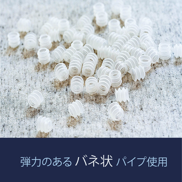 毎日の眠りを、もっと快適に。バネ形状の弾力あるパイプを中材に採用し、しっかりとした支えとやわらかなフィット感を実現しました。 パイプ量の調整で高さを自由にカスタマイズでき、お好みの寝姿勢にぴったり合わせられます。