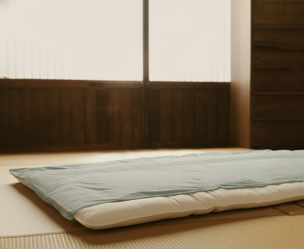 木製のヘッドボードや畳・ラグと合わせると、和モダンな落ち着きのある寝室に仕上がります。