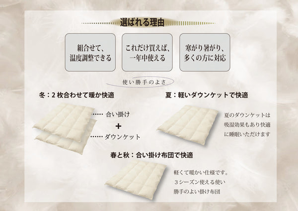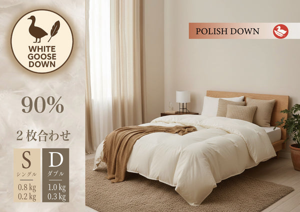「一年を通して、心地よく。 ポーランド産ホワイト安心の恵みを2枚合わせで。」